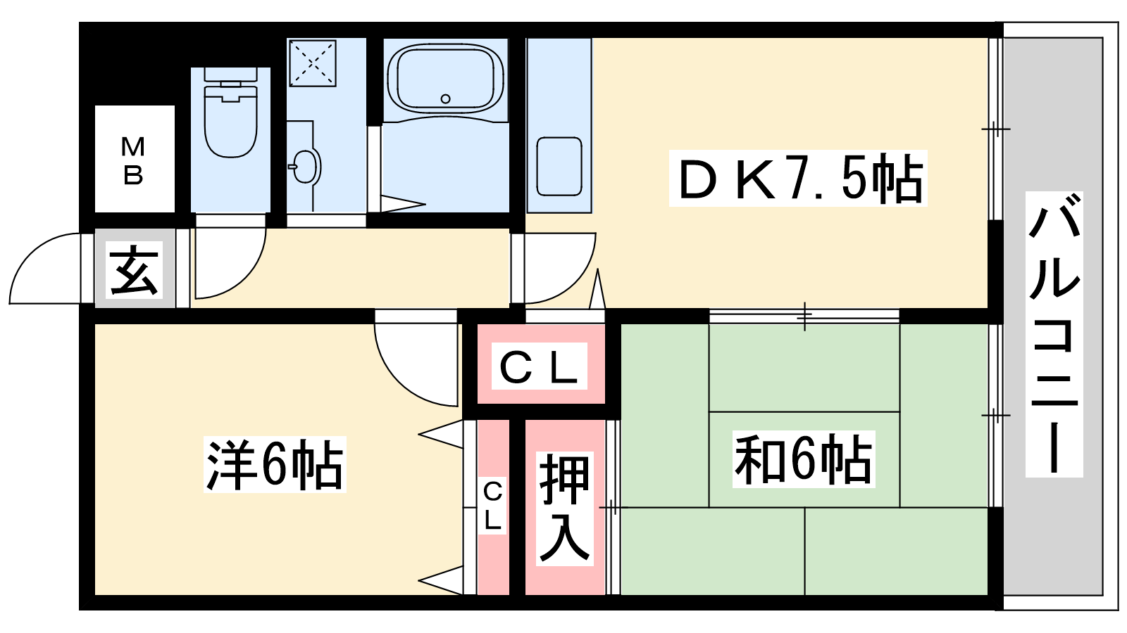 - DK7.5帖、洋室6帖、和室6帖