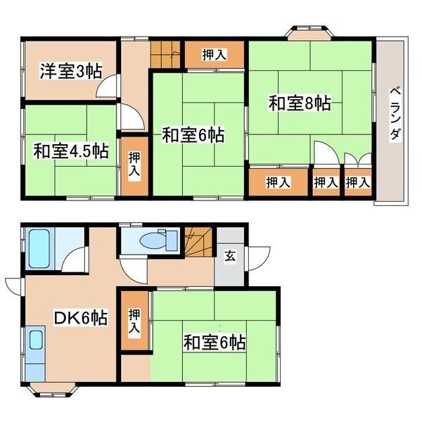 - DK6帖、洋室3帖、和室8帖、和室6帖、和室6帖、和室4.5帖