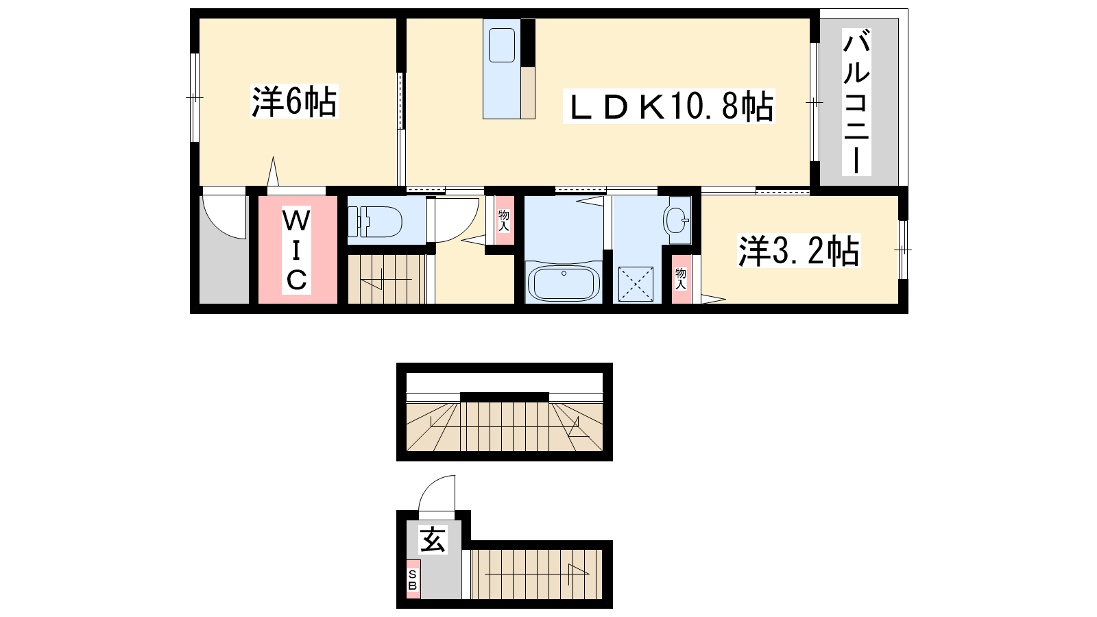 - LDK10.8帖、洋室6帖、洋室3.2帖