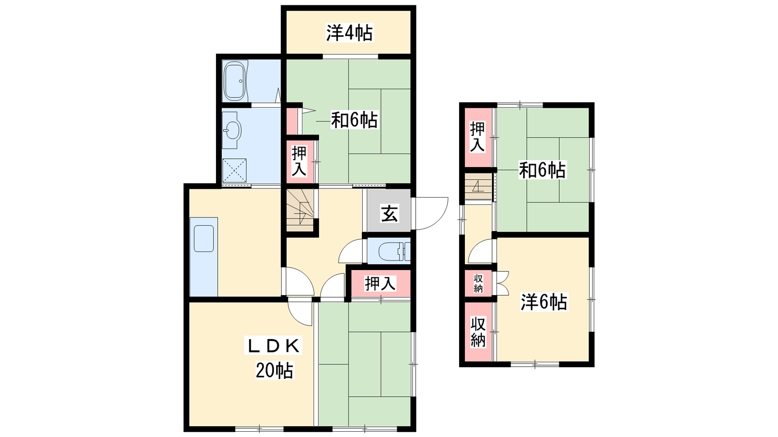 - LDK20帖、洋室6帖、和室6帖、和室6帖、洋室4帖