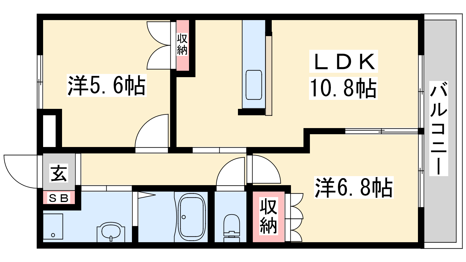 - LDK10.8帖、洋室6.8帖、洋室5.6帖