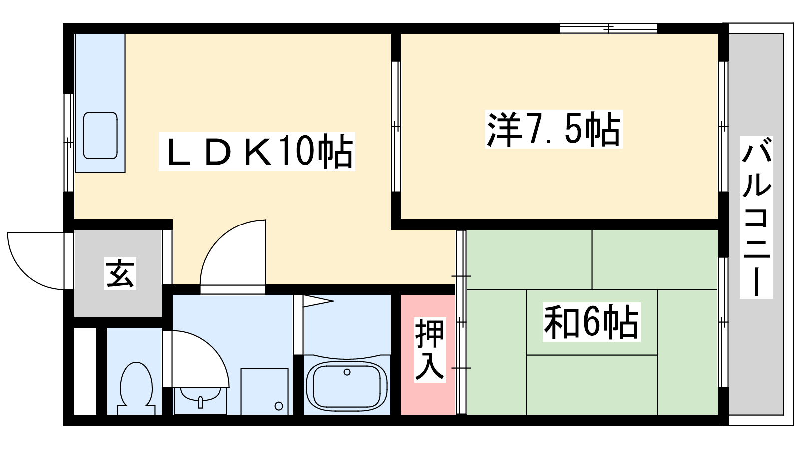 - LDK10帖、洋室7.5帖、和室6帖