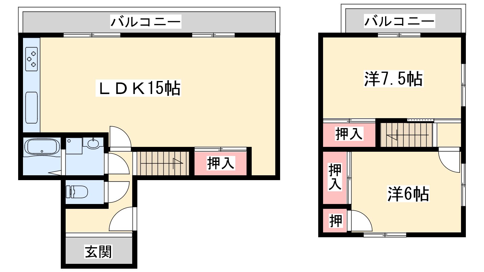 - LDK15帖、洋室7.5帖、洋室6帖