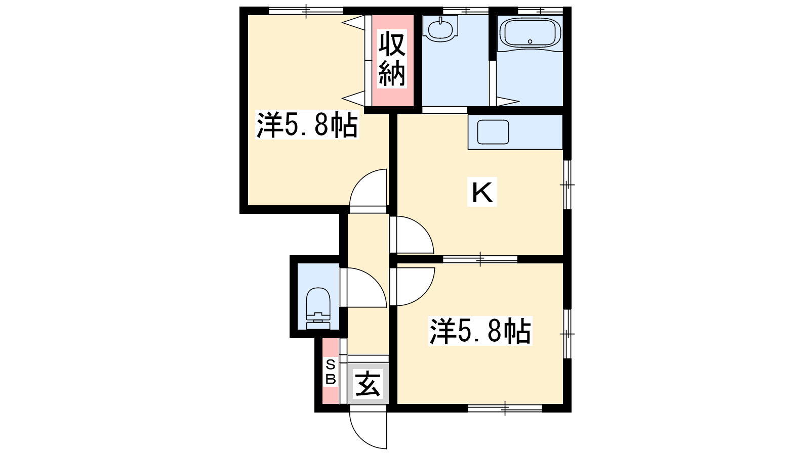 - K5.8帖、洋室5.8帖、洋室5.8帖