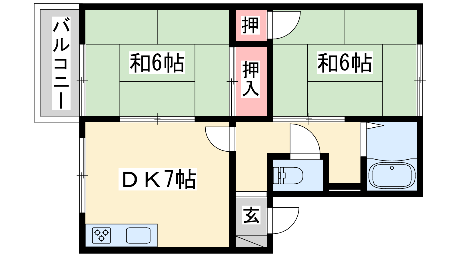 - DK7帖、和室6帖、和室6帖