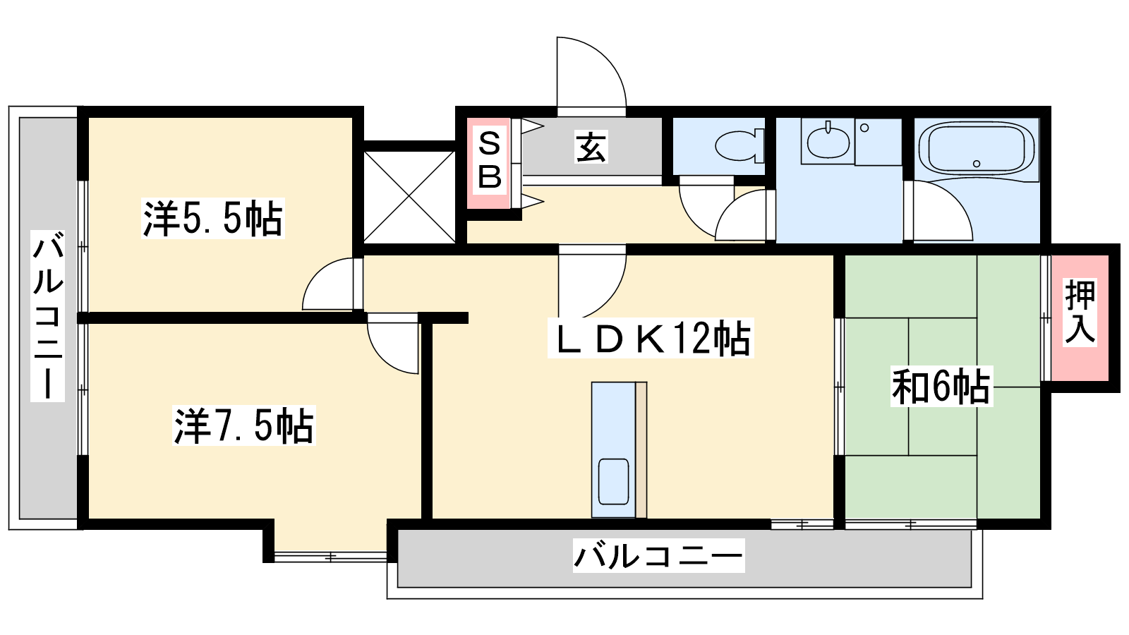 - LDK12帖、和室6帖、洋室7.5帖、洋室5.5帖