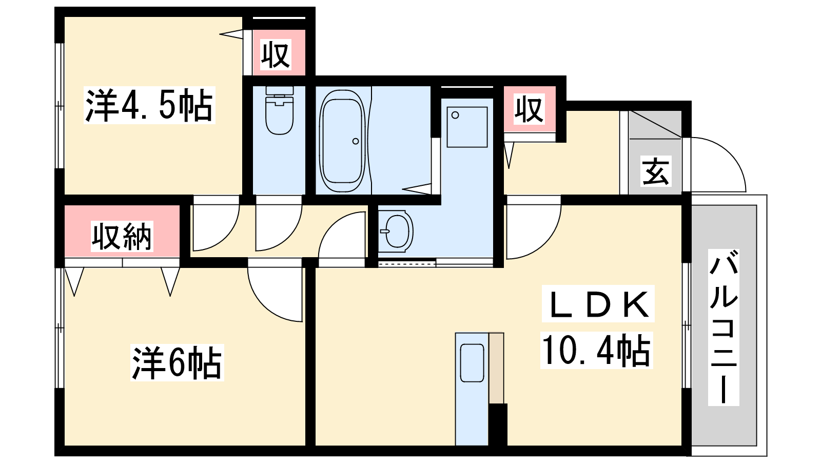 - LDK10.4帖、洋室6帖、洋室4.5帖