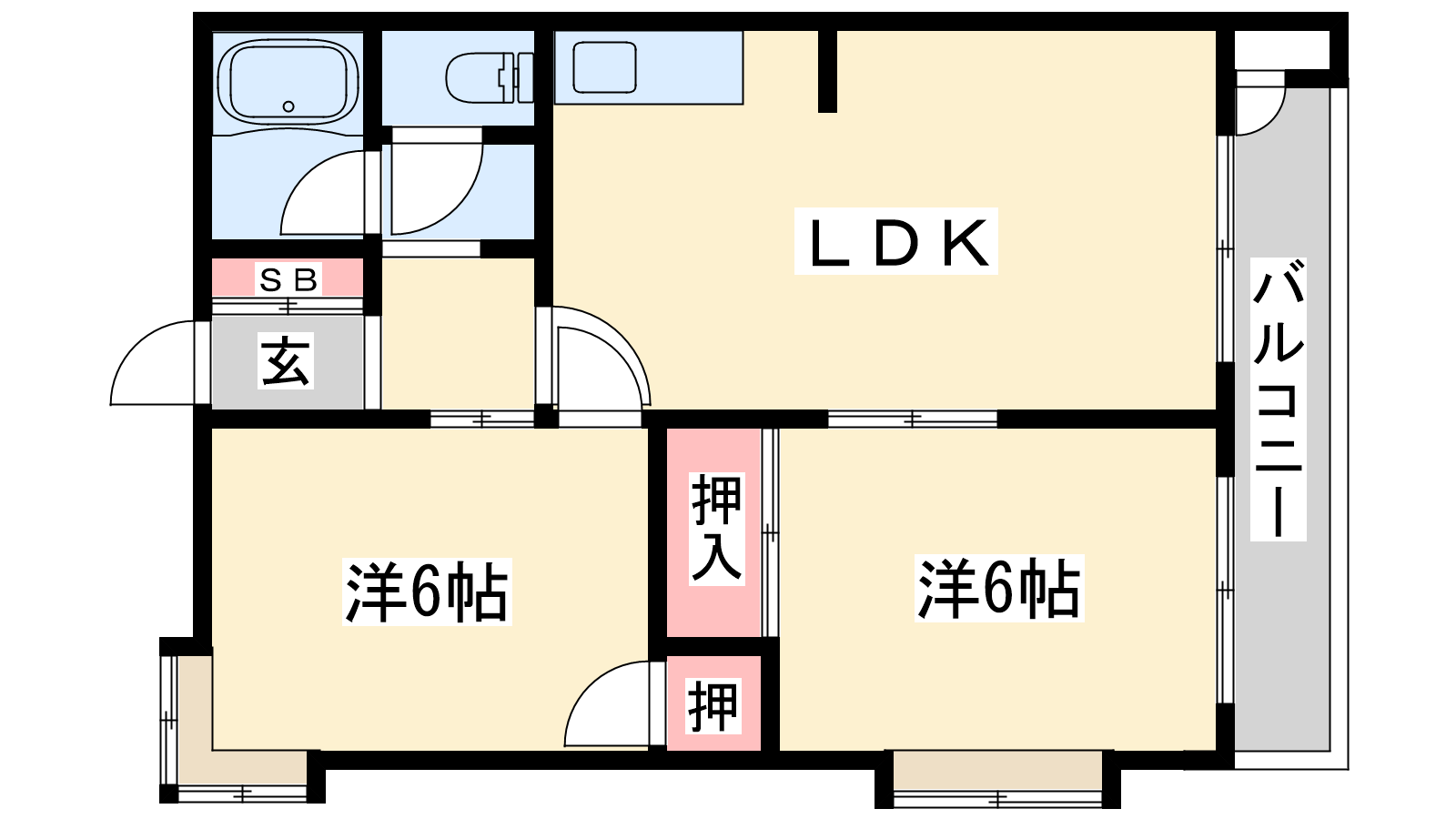 - LDK12帖、洋室6帖、洋室6帖