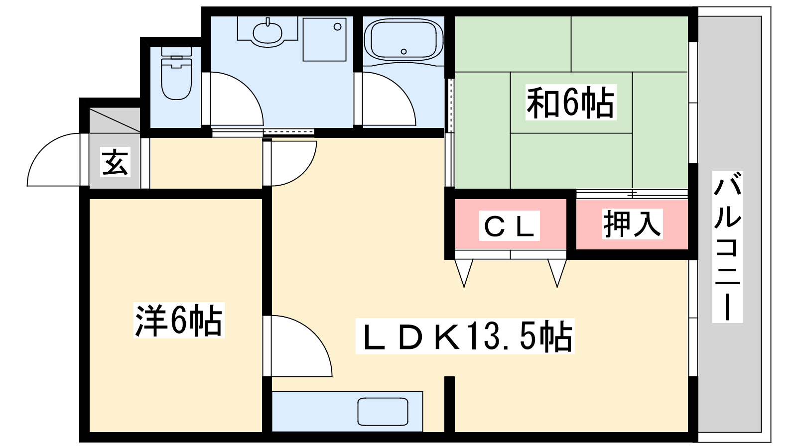 - LDK13.5帖、和室6帖、和室6帖