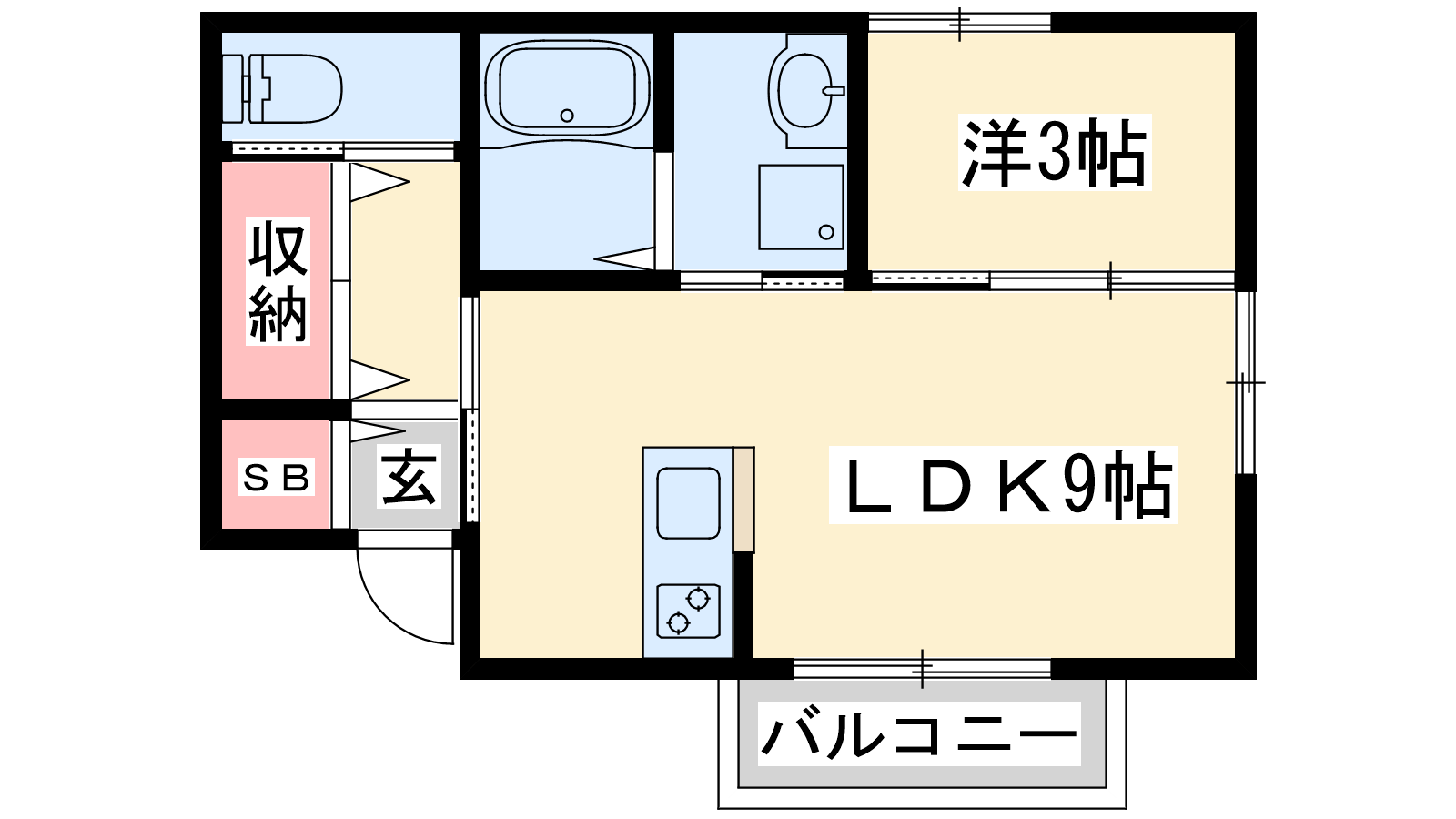 - LDK9帖、洋室3帖