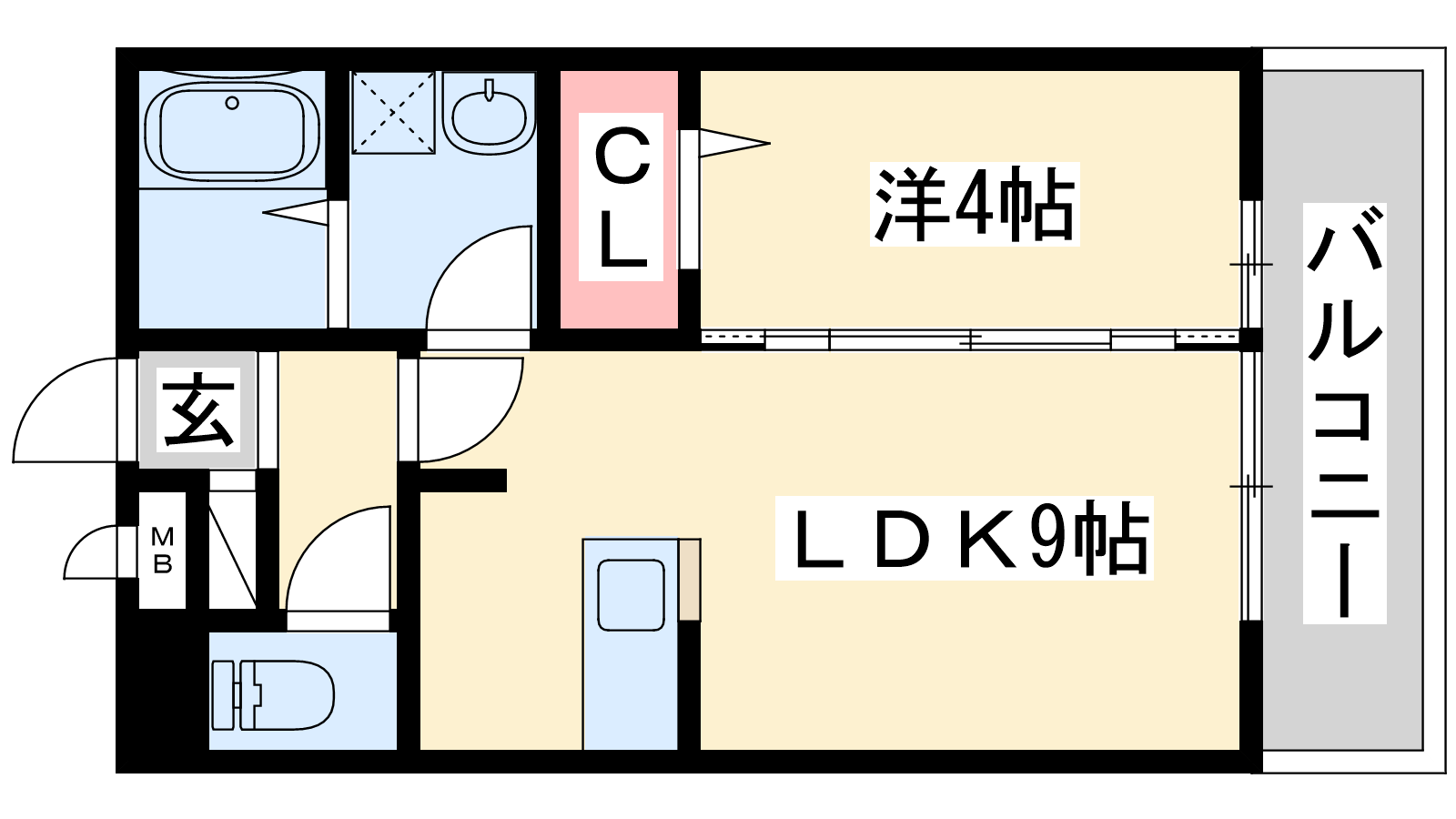 - LDK9帖、洋室4帖