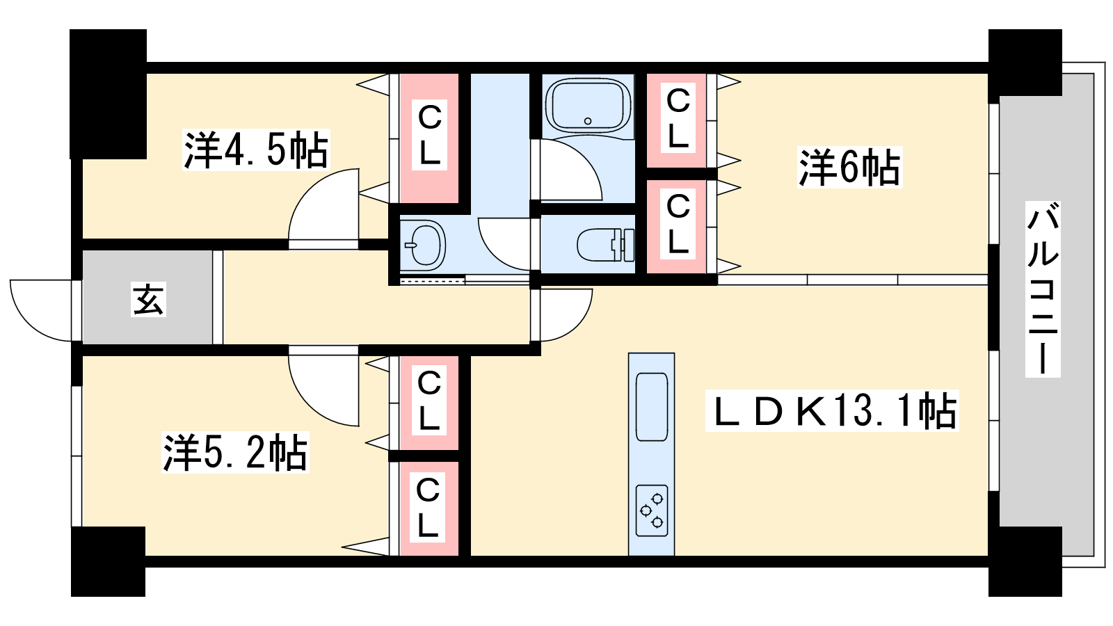 - LDK13.1帖、洋室6帖、洋室5.2帖、洋室4.5帖