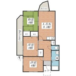 - LDK9.5帖、洋室6帖、洋室6帖、和室6帖