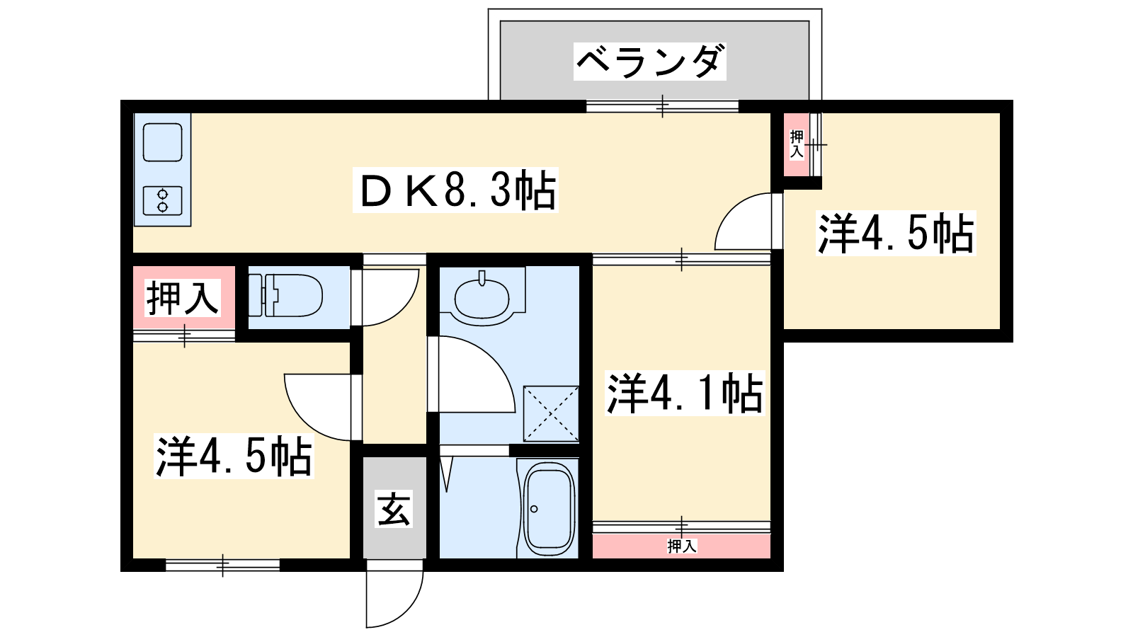 - DK8.3帖、洋室5帖、洋室4.5帖、洋室4.5帖