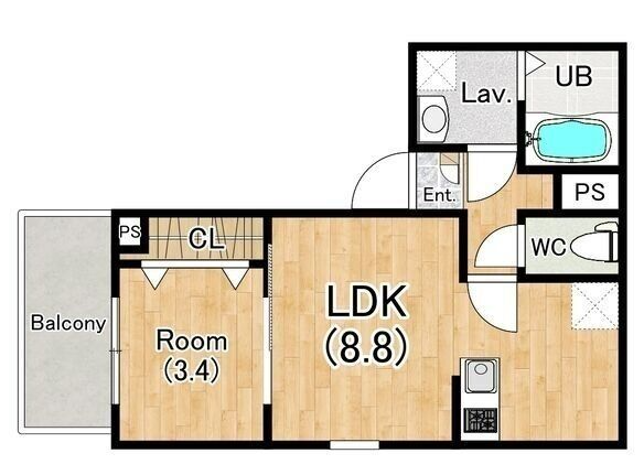 - LDK8.8帖、洋室3.4帖