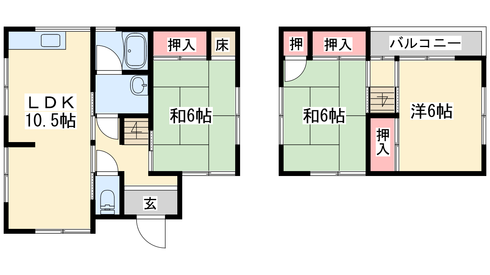 - LDK10.5帖、洋室6帖、和室6帖、和室6帖