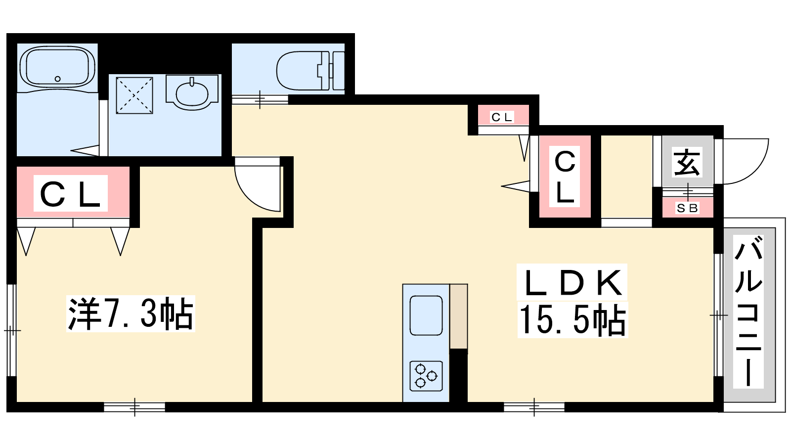 - LDK15.5帖、洋室7.3帖