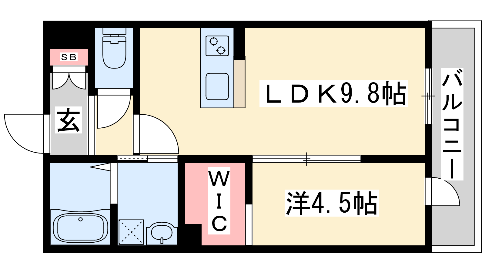 - LDK9.8帖、洋室4.5帖