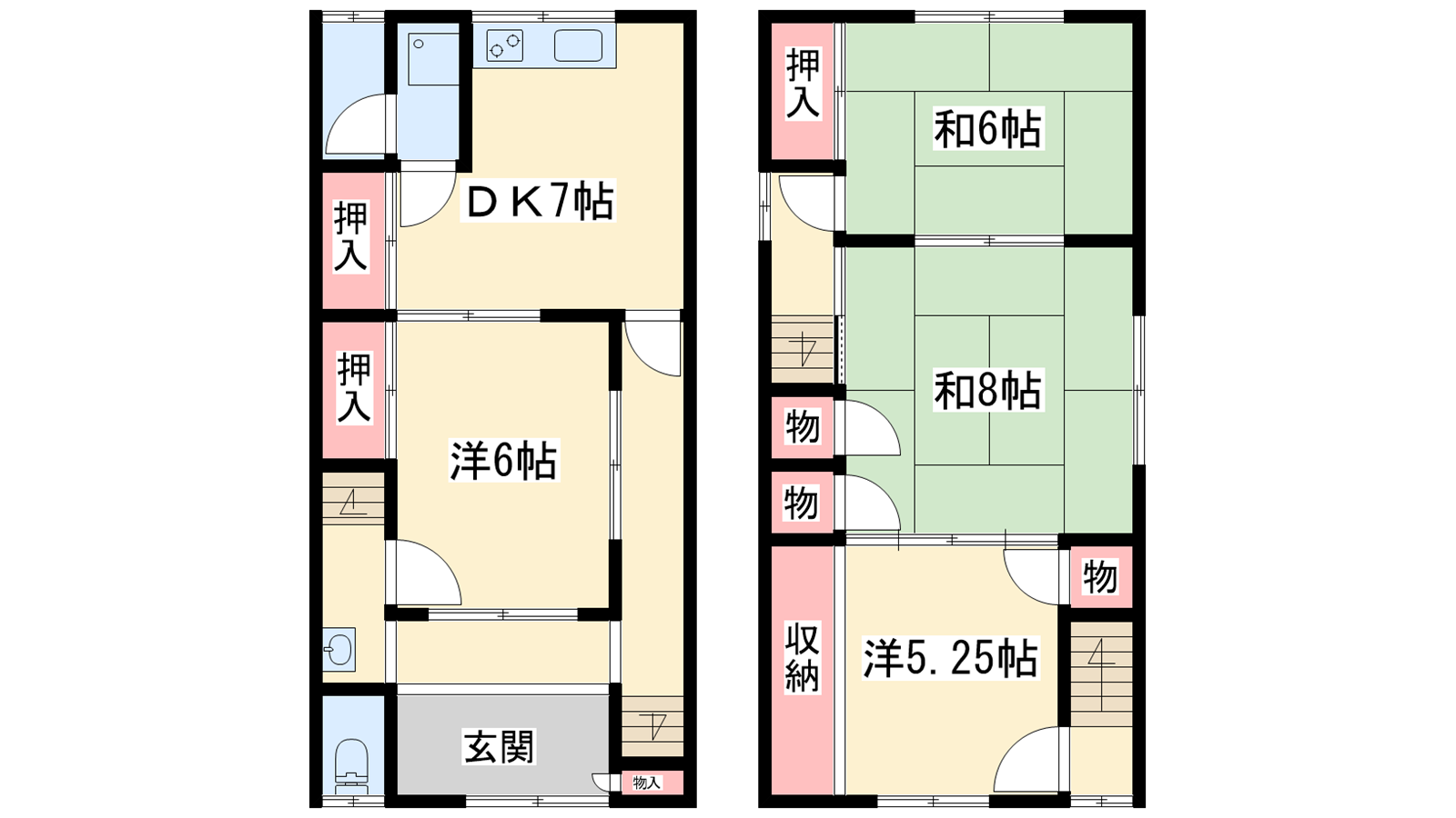 - DK7帖、洋室6帖、洋室5.2帖、和室8帖、和室6帖