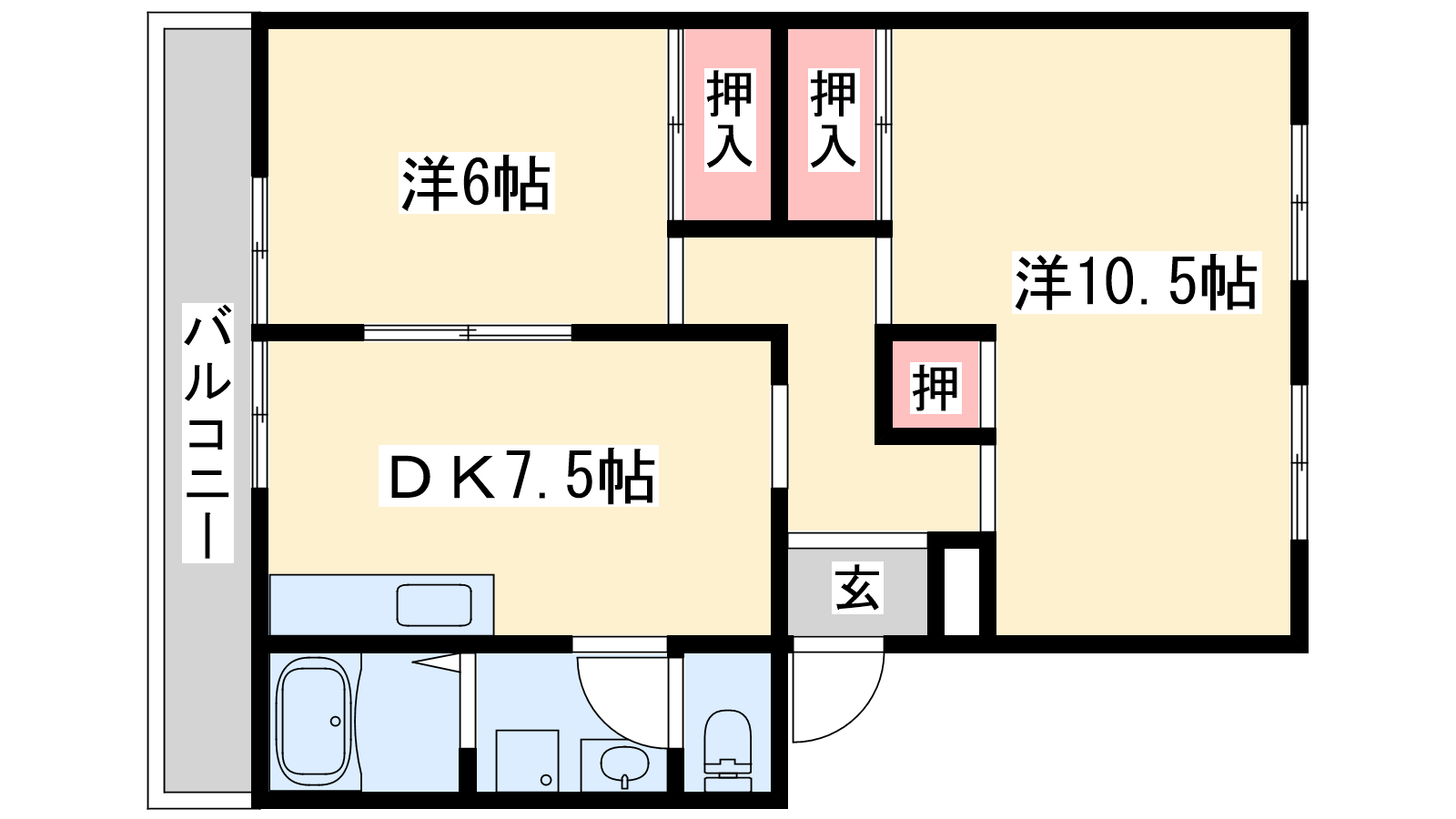 - DK7.5帖、洋室10.5帖、洋室6帖