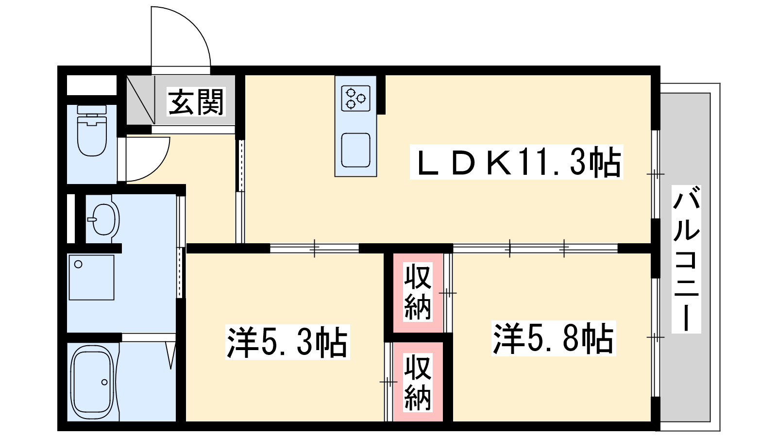 - LDK13帖、洋室4.8帖、洋室5.7帖